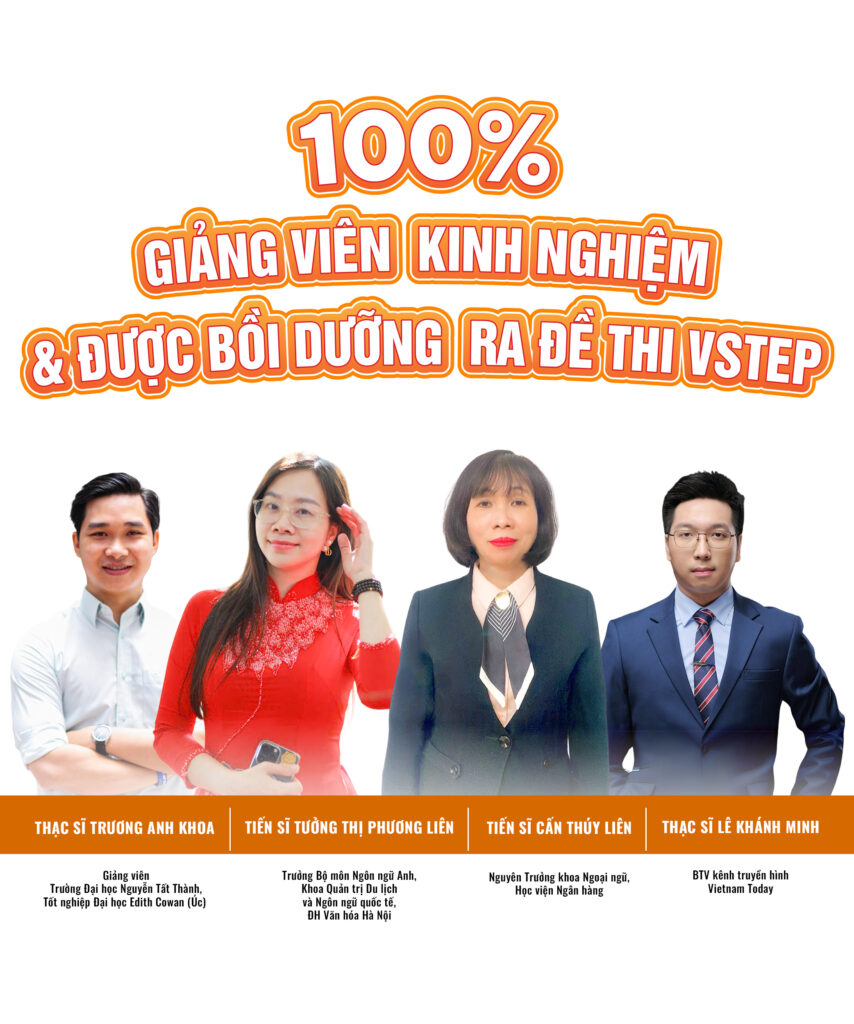 Là những giảng viên giàu kinh nghiệm đến từ các trường đại học lớn, được bồi dưỡng ra đề VSTEP và cập nhật khung năng lực giảng dạy quốc gia.