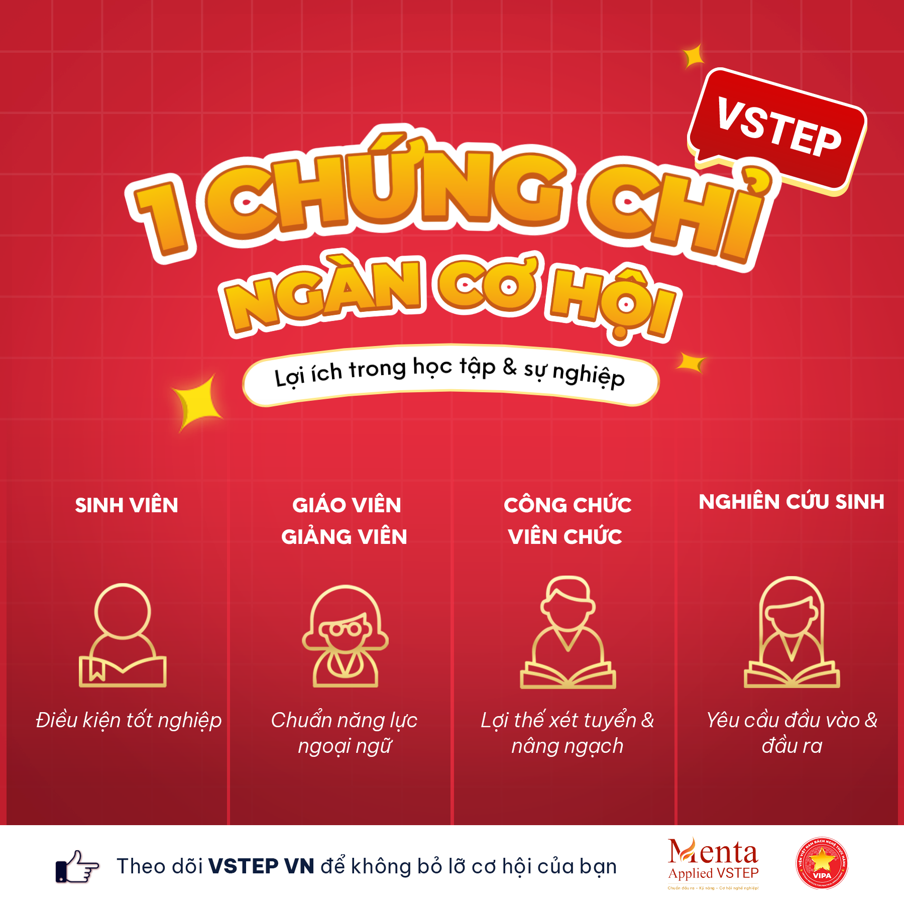 VSTEP – chứng chỉ tiếng Anh theo Khung Năng lực Ngoại ngữ 6 bậc Việt Nam – chính là minh chứng rõ ràng cho điều đó. Không chỉ dừng lại ở điểm số, VSTEP còn là điều kiện cần trong nhiều cột mốc quan trọng của học tập và nghề nghiệp.
